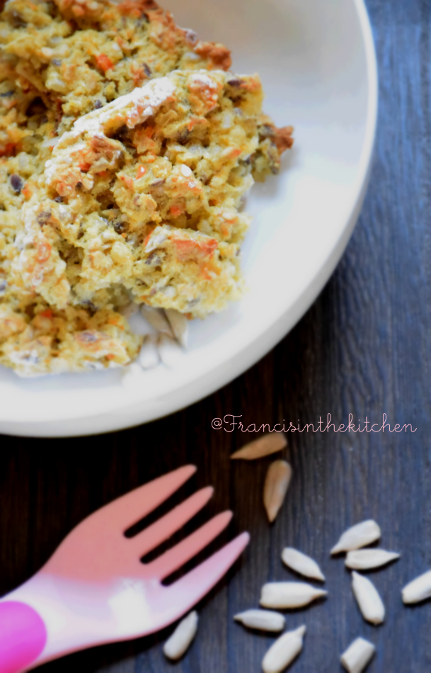Lessate la carota e la patata. Una volta cotte (lasciatele ancora un po’ croccanti), unitele ai ceci e frullate il tutto. Versate in una ciotola e unite mezza cipolla tritata ed i semi misti per un totale di 100 gr (anch’essi leggermente tritati). Mescolate bene e aggiustate con 2 pizzichi di sale ed una grattugiata abbondante di parmigiano.