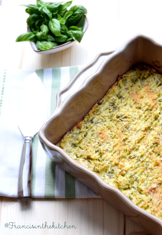 Una volta terminata la cottura sia di patate e fagiolini aggiungeteli alle zucchine schiacciando un po’ il tutto. Deve restare quasi come una purea. Aggiungete 1 uovo, 1 cucchiaio abbondante di pan grattato, il parmigiano, il basilico spezzettato (se lo fate con le mani invece che con il coltello rimane molto più profumato) e una manciata di pinoli. Aggiustate di sale se necessario.